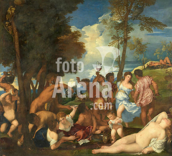 alb2068972 Vecellio di Gregorio Tiziano / 'Bacchanal on Andros', 1523-1526, Italian School, Oil on canvas, 175 cm x 193 cm, P00418. Museum: MUSEO DEL PRADO, MADRID, SPAIN.