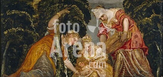 alb2069187 Jacopo Robusti Tintoretto / 'Moses saved from the waters', ca. 1555, Italian School, Oil on canvas, 56 cm x 119 cm, P00396. Museum: MUSEO DEL PRADO, MADRID, SPAIN.