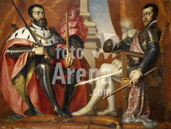 alb2069348 Antonio Arias Fernández / 'Charles V and Philip II', 1639-1640, Spanish School, Oil on canvas, 160,5 cm x 214,5 cm, P05582. Museum: MUSEO DEL PRADO, MADRID, SPAIN.