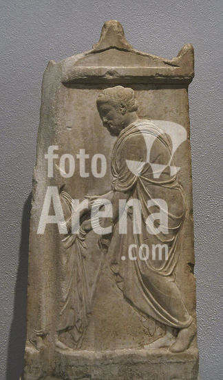 alb21207147 Ancient Greece. Funerary stele of Euphanes' family. Early 4th century BC. From the north cemetery of Piraeus. Detail. Archaeological Museum of Piraeus. Greece.