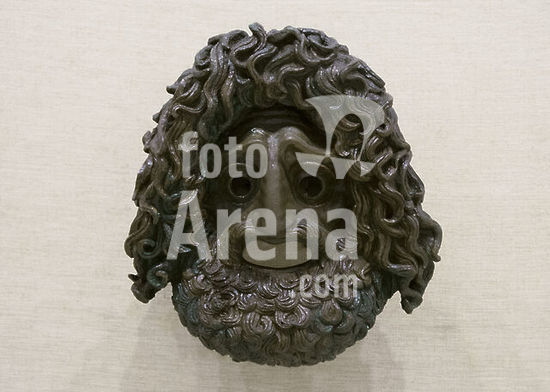 alb21207146 Ancient Greece. Tragedy mask. Bronze. From the Piraeus. Mid-4th century BC. Attributed to Silanion. Archaeological Museum of Piraeus. Greece.