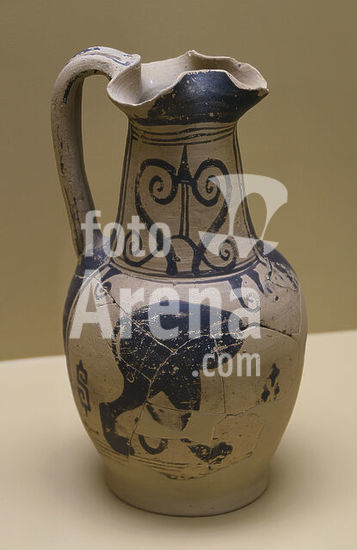 alb23131251 Ancient Greece. Trefoil-mouthed oinochoe decorated with depiction of a lion, ca. 650 BC. Museum of the Ancient Agora. Athens, Greece.