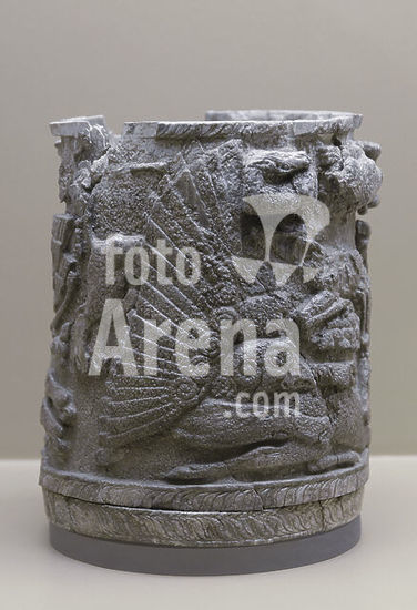alb23131256 Ivory pyxis featuring a carved scene of griffons attacking stags. Late 15th century BC. Museum of the Ancient Agora. Athens, Greece.