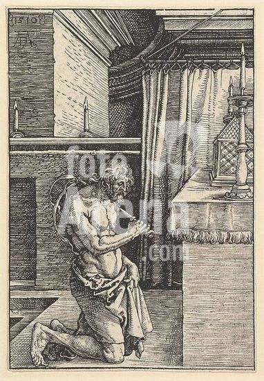 alb3610563 David in Prayer. Artist: Rembrandt (Rembrandt van Rijn) (Dutch, Leiden 1606-1669 Amsterdam). Dimensions: Sheet: 17 13/16 × 12 11/16 in. (45.3 × 32.2 cm)Plate: 5 1/2 × 3 11/16 in. (14 × 9.4 cm). Date: 1652. Museum: Metropolitan Museum of Art, New York, USA. Author: Rembrandt (Rembrandt van Rijn).
