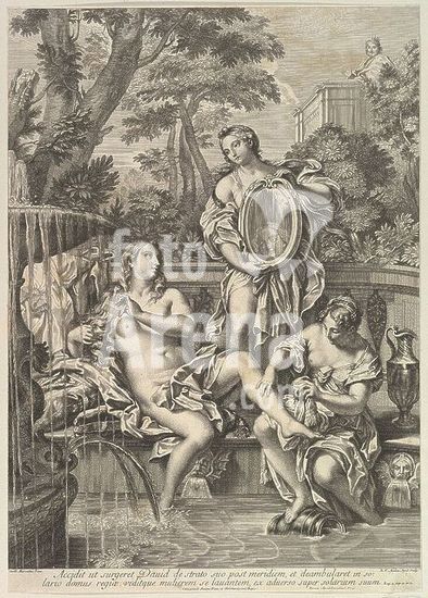 alb3610794 David and Bathsheba. Artist: After Carlo Maratti (Italian, Camerano 1625-1713 Rome); Robert van Audenaerde (Flemish, Ghent 1663-1743 Ghent). Dimensions: sheet: 21 7/8 x 16 in. (55.6 x 40.7 cm)plate: 18 1/8 x 12 13/16 in. (46 x 32.6 cm). Publisher: Johann Jakob Frey the Elder (Swiss, active in Rome 1681-1752). Date: 1680-1743. Museum: Metropolitan Museum of Art, New York, USA.