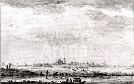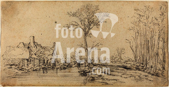 alb3617946 Distant Town Seen across Water and Fields. Artist: Style of Jan van Goyen (Dutch, Leiden 1596-1656 The Hague). Dimensions: 5 1/4 x 8 3/8 in. (13.4 x 21.2 cm). Date: 1652.This river scene recalls the style of Jan van Goyen's drawings of the 1630s. Yet the drawing seems too schematic for van Goyen. While it has also been given to Anthonie Waterloo -- based on his drawings imitating van Goyen's work of the 1630s -- the attribution is too tenuous to draw a definitive conclusion. Museum: Metropolitan Museum of Art, New York, USA.