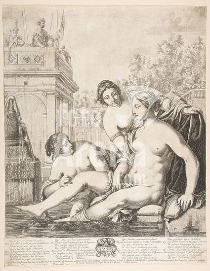 alb3627285 David Watching Bathsheba Bathe. Artist: After Laurent de La Hyre (French, Paris 1606-1656 Paris); de la Court. Dimensions: sheet: 16 7/16 x 12 15/16 in. (41.7 x 32.8 cm). Date: n.d.. Museum: Metropolitan Museum of Art, New York, USA.