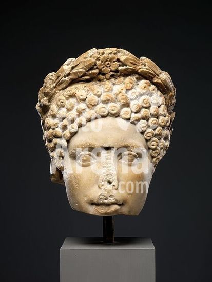 alb3683392 Portrait head of a woman. Culture: Roman. Dimensions: H. 10 1/4 in. (26 cm). Date: ca. A.D. 80-100.It has been argued that this portrait represents Diva Julia Augusta, the daughter of the Emperor Titus, but her features were unlike those shown here. (The drilled pupils of the eyes date to the 19th century.). Museum: Metropolitan Museum of Art, New York, USA.