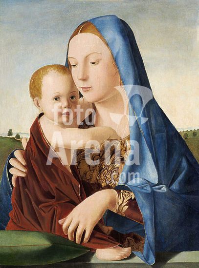 alb3717638 Madonna and Child. Dated: c. 1475. Dimensions: painted surface: 58.1 x 43.2 cm (22 7/8 x 17 in.) overall: 58.9 x 43.7 cm (23 3/16 x 17 3/16 in.) framed: 86.7 x 74.8 x 8.3 cm (34 1/8 x 29 7/16 x 3 1/4 in.). Medium: oil and tempera on panel transferred from panel. Museum: National Gallery of Art, Washington DC. Author: ANTONELLO DA MESSINA.