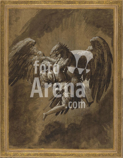 alb3896954 Tapestry Design: Apollo in his Chariot Led by Aurora. Date/Period: 1760-89. Drawing. Pen and brush and black ink, gray wash on off-white laid paper, ruled border in pen and black ink, lined. Author: FEDELE FISCHETTI.