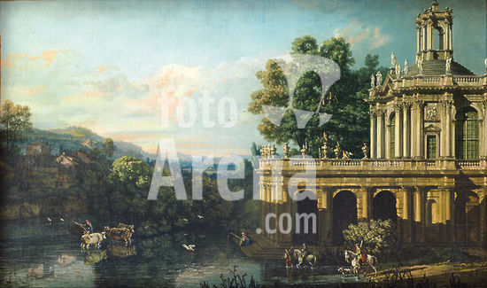 alb3892462 Architectural Caprice with a Palace. Date/Period: C.-1765-1766. Painting. Oil on canvas. Height: 487 mm (19.17 in); Width: 792 mm (31.18 in). Author: BERNARDO BELLOTTO.