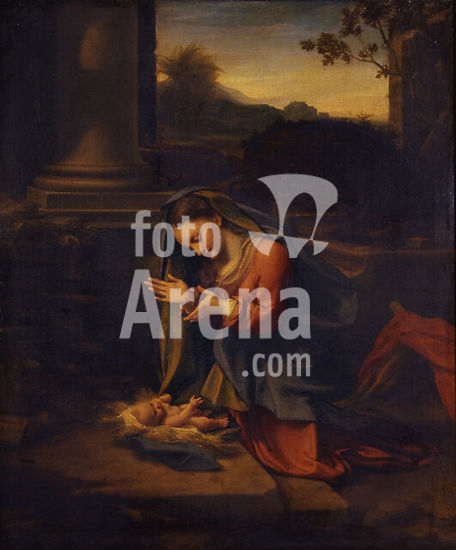 alb3894902 La Vergine che adora il Bambino / Madonna adoring the Child. Date/Period: From 1524 until 1526. Painting. Oil on panel. Height: 81 cm (31.8 in); Width: 77 cm (30.3 in). Author: CORREGGIO.