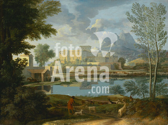 alb3904891 Landscape with a Calm. Date/Period: 1650 - 1651. Painting. Oil on canvas. Height: 970 mm (38.18 in); Width: 1,310 mm (51.57 in). Author: NICOLAS POUSSIN.