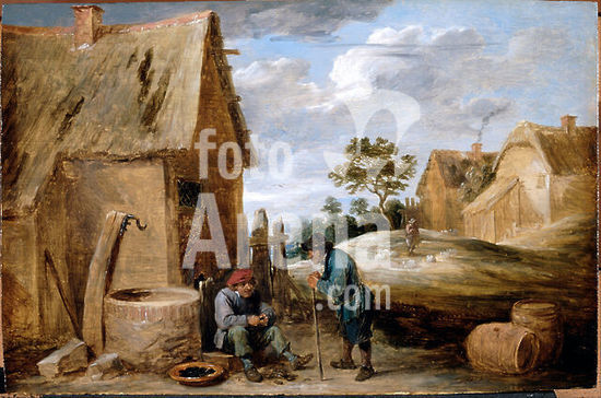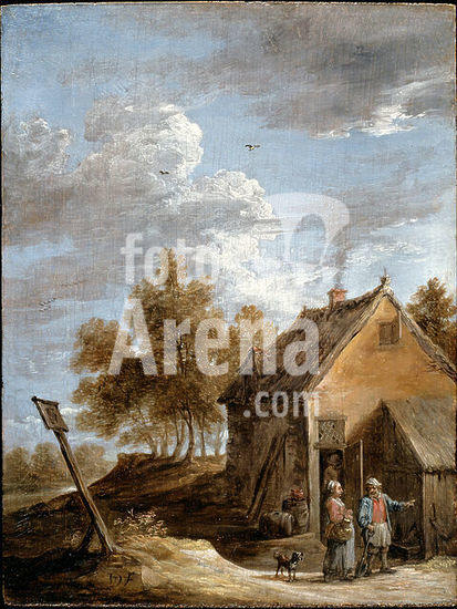 alb3906457 A Cottage. Date/Period: Before 1690. Painting. Oil on panel Oil. Height: 220 mm (8.66 in); Width: 166 mm (6.53 in). Author: DAVID TENIERS THE YOUNGER.