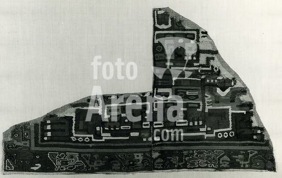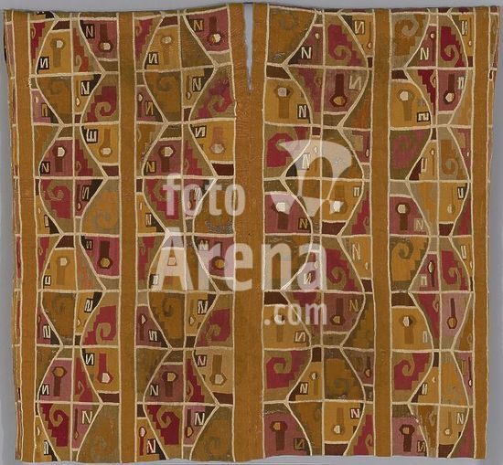 alb4134447 Fragments (From a Tunic). Wari; Peru, Possibly central or south coast. Date: 600 AD-800 AD. Dimensions: a: 64.2 × 57.3 cm (25 1/4 × 22 1/2 in.)b: 32 × 14.7 cm (12 1/2 × 5 1/2 in.). Origin: Peru. Museum: The Chicago Art Institute, USA.