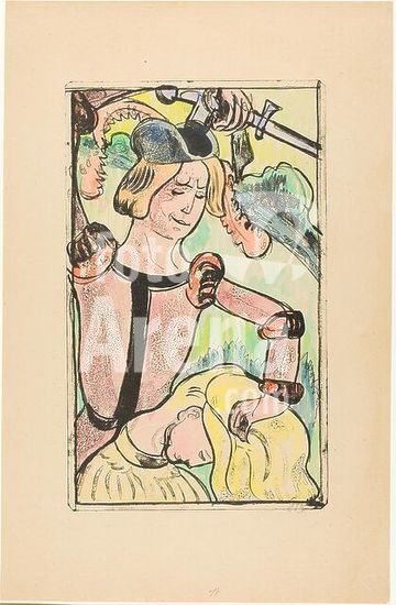 alb4160363 The Outraged Roland, from Les Cantilenes. Émile Bernard; French, 1868-1941. Date: 1892. Dimensions: 330 × 200 mm (image); 650 × 300 mm (sheet). Hand-colored lithograph on zinc on tan wove paper. Origin: France. Museum: The Chicago Art Institute, USA.