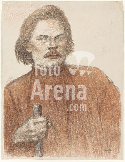 alb4167255 Frontal Portrait from the Waist Up of Maxime Gorki. Théophile-Alexandre Steinlen; French, born Switzerland, 1859-1923. Date: 1905. Dimensions: 633 × 475 mm (image); 639 × 491 mm (sheet). Lithograph in red and black on grayish-ivory laid china paper. Origin: France. Museum: The Chicago Art Institute, USA.