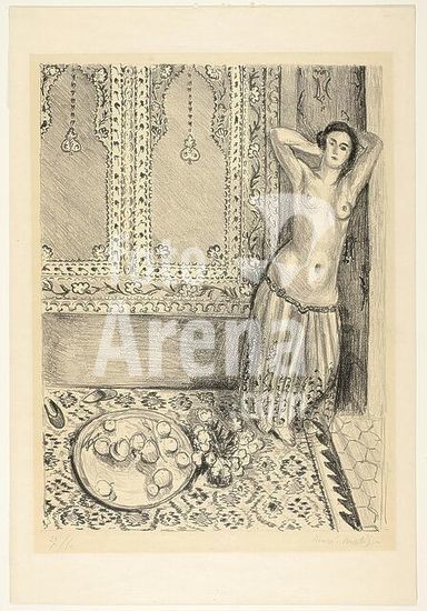 alb4167592 Odalisque Standing with Fruit Tray. Henri Matisse; French, 1869-1954. Date: 1924. Dimensions: 375 × 275 mm (image); 480 × 327 mm (sheet). Lithograph in black on cream wove Japanese vellum (discolored to tan). Origin: France. Museum: The Chicago Art Institute, USA.