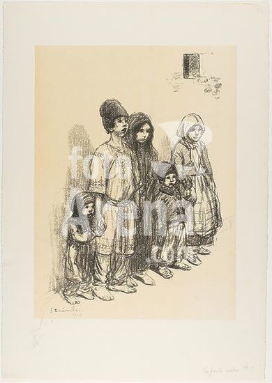 alb4170016 Serbian Children. Théophile-Alexandre Steinlen; French, born Switzerland, 1859-1923. Date: 1915. Dimensions: 383 × 282 mm (image); 528 × 370 mm (sheet). Lithograph in black over fawn tint on thick off-white wove paper. Origin: France. Museum: The Chicago Art Institute, USA.
