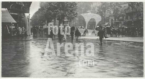 alb4209816 A Wet Day on the Boulevard, Paris. Alfred Stieglitz; American, 1864-1946. Date: 1894. Dimensions: 5.6 x 10.4 cm (image/paper/first mount); 33.5 x 26.3 cm (second mount). Gelatin silver print. Origin: United States. Museum: The Chicago Art Institute, USA.