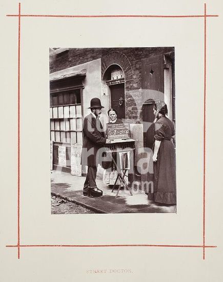 alb4210595 Street Doctors. John Thomson; Scottish, 1837-1921. Date: 1877. Dimensions: 11.5 x 8.7 cm (image/paper); 27.1 x 20.9 cm (mount). Woodburytype, from the album "Street Life in London". Origin: Scotland. Museum: The Chicago Art Institute, USA.