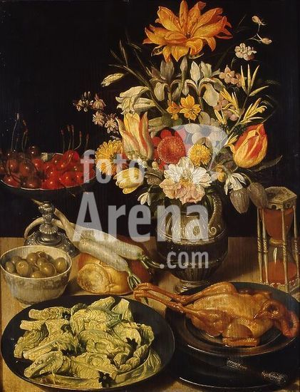 alb4219468 'Still Life with Flowers and Snacks'. Germany, Between 1630 and 1635. Dimensions: 52,5x41 cm. Museum: State Hermitage, St. Petersburg. Author: GEORG FLEGEL.