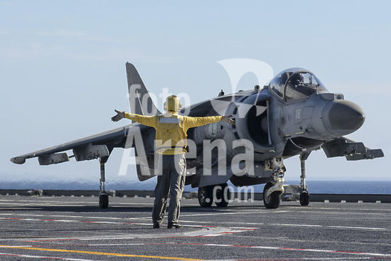 alb5572128 March 2018 - Embarked activity of the Italian Navy short take-off and vertical landing (STOVL) AV-8B+ Harrier II jet of the Gruppo Supporto Aerei Imbarcati (GRUPAER), Embarked Air Support Group) aboard the Italian Navy CVH 550 Cavour aircraft carrier.