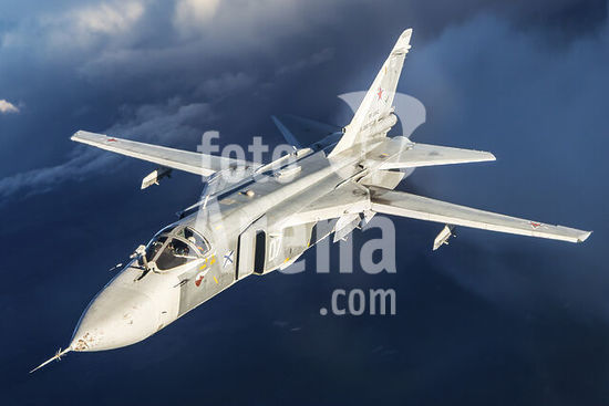 alb5572587 Sukhoi Su-24M frontline bomber plane of the Russian Navy flying in mid-air, Kaliningrad Region, Russia.