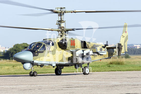 alb5572126 Russian Aerospace Forces (VKS) Ka-52 attack helicopter during the contest Aviadarts 2018 (International Army Games) at Ryazan, Dyagilevo airport.
