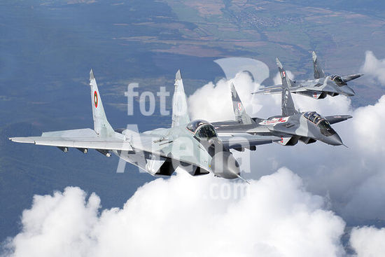 alb5572127 Bulgarian and Polish Air Force MiG-29s planes flying together during a Polish detachment at Graf Ignatievo Air Base, Bulgaria.