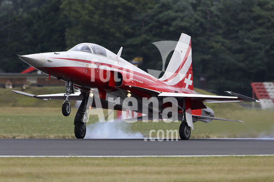 alb5572166 F-5E Tiger II jet fighter of Patrouille Suisse landing during RIAT-2017 airshow, Fairford, England, United Kingdom.