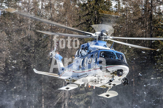 alb5572195 Italian Polizia di Stato new Agusta Westland AW-139 in service during the Cortina 2021 FIS Alpine World Ski Championships in Italy.