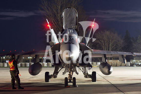 alb5572513 A Royal Canadian Air Force CF-188 (F/A-18A) Hornet preparing for a night takeoff from Mihail Kogalniceanu, Romania, during the bilateral exercise Resilient Resolve 2016.