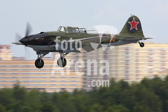 alb5572527 Ilyushin IL-2M3 attack airplane landing during MAKS-2017 airshow, Zhukovsky, Moscow Region, Russia.