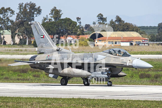 alb5572547 United Arab Emirates Air Force F-16E Desert Falcon taxiing at Andravida Air Base, Greece, during the international Exercise Iniohos 2017.
