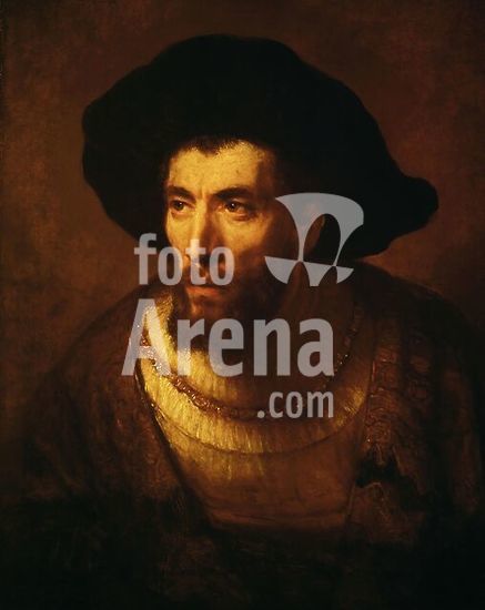 alb3680279 Bellona. Artist: Rembrandt (Rembrandt van Rijn) (Dutch, Leiden 1606-1669 Amsterdam). Dimensions: 50 x 38 3/8 in. (127 x 97.5 cm). Date: 1633.Rembrandt's sober and powerful depiction of Bellona, the Roman goddess of war, was perhaps intended to suggest the new Dutch Republic's readiness to repel foreign forces. Images of Mars and his sister Bellona occasionally decorated the headquarters of civic guard companies. The shield, with its frightful face of Medusa, was added at a late stage of work, probably in response to seeing a version of Rubens's well-known painting of a severed Medusa's head. Museum: Metropolitan Museum of Art, New York, USA.