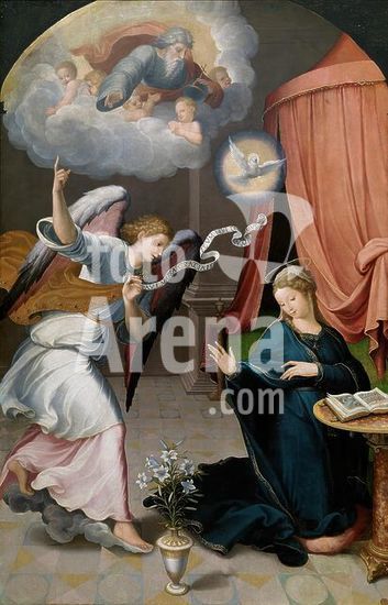 alb2068789 Juan Correa de Vivar / 'The Annunciation', 1559, Spanish School, Oil on panel, 225 cm x 146 cm, P02828. Museum: MUSEO DEL PRADO, MADRID, SPAIN.