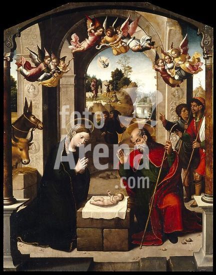 alb2069545 Juan Correa de Vivar / 'Nativity', ca. 1535, Spanish School, Oil on panel, 228 cm x 183 cm, P00690. Museum: MUSEO DEL PRADO, MADRID, SPAIN.