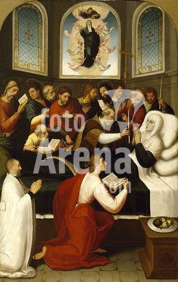 alb2070066 Juan Correa de Vivar / 'Death of the Virgin', 1546-1550, Spanish School, Oil on panel, 254 cm x 147 cm, P00671. Museum: MUSEO DEL PRADO, MADRID, SPAIN.