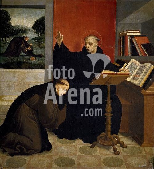 alb2070665 Juan Correa de Vivar / 'Saint Benedict blessing Saint Maurus', 1540-1545, Spanish School, Panel, 94 cm x 87 cm, P00673. Museum: MUSEO DEL PRADO, MADRID, SPAIN.