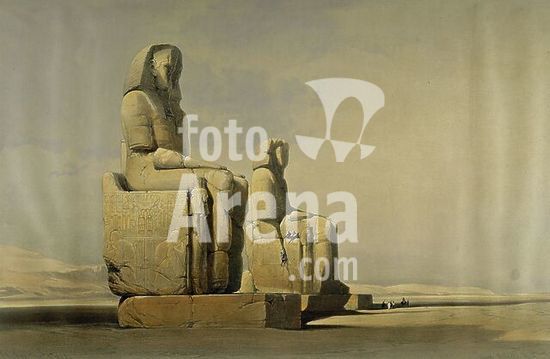 alb352394 The memmon colossi statue of Amenphis III, lithograph by David Roberts, 1838.