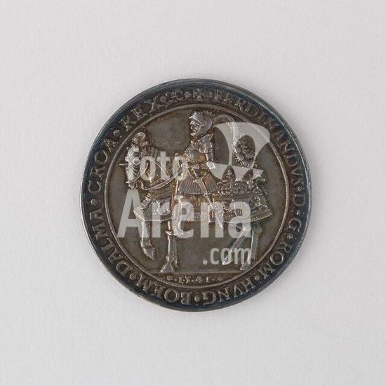 alb3638577 Coin (One and a Half Thaler) Showing Ferdinand I. Culture: Austrian. Dimensions: Diam. 2 1/16 in. (5.2 cm); thickness 1/8 in. (0.3 cm); Wt. 1.6 oz. (45.4 g). Date: 16th century. Museum: Metropolitan Museum of Art, New York, USA.