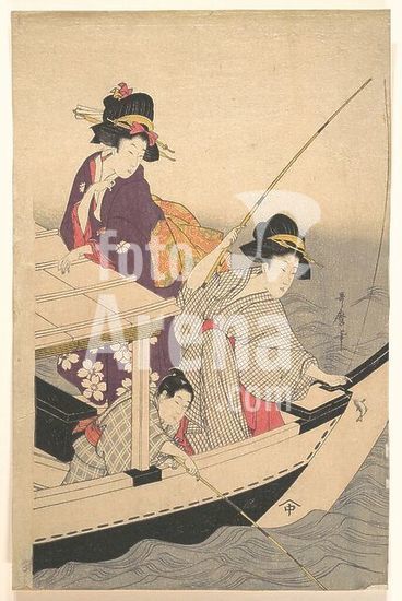 alb3677329 Fishing. Artist: Kitagawa Utamaro (Japanese, ca. 1754-1806). Culture: Japan. Dimensions: Image: 14 1/2 × 9 3/8 in. (36.8 × 23.8 cm). Date: late 18th century. Museum: Metropolitan Museum of Art, New York, USA.
