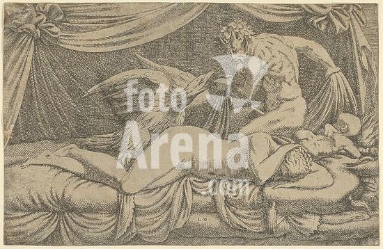 alb3683305 Jupiter and Antiope. Artist: Léon Davent (French, active 1540-56); After Francesco Primaticcio (Italian, Bologna 1504/5-1570 Paris). Dimensions: Sheet: 6 9/16 × 10 1/8 in. (16.6 × 25.7 cm). Date: ca. 1540-45. Museum: Metropolitan Museum of Art, New York, USA.