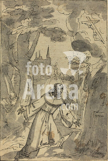 alb3700618 The Stigmatization of Saint Francis. Dated: 1607. Dimensions: overall: 18.7 x 12.6 cm (7 3/8 x 4 15/16 in.). Medium: pen and black ink with gray wash on laid paper. Museum: National Gallery of Art, Washington DC. Author: Johann Matthias Kager.