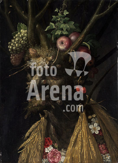 alb3714849 Four Seasons in One Head. Dated: c. 1590. Dimensions: overall: 60.4 x 44.7 cm (23 3/4 x 17 5/8 in.) framed: 94 x 75 cm (37 x 29 1/2 in.). Medium: oil on panel. Museum: National Gallery of Art, Washington DC. Author: Giuseppe Arcimboldo.