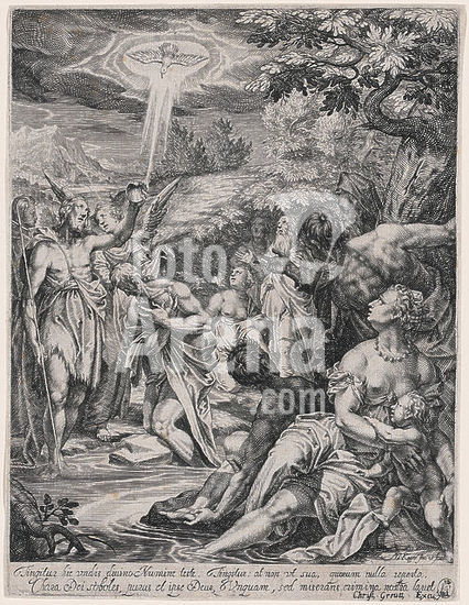 alb3718859 The Baptism of Christ. Dated: c. 1610?. Dimensions: plate: 21.4 × 16.4 cm (8 7/16 × 6 7/16 in.) sheet: 21.6 × 1.6 cm (8 1/2 × 5/8 in.). Medium: engraving on laid paper. Museum: National Gallery of Art, Washington DC. Author: Johann Matthias Kager.