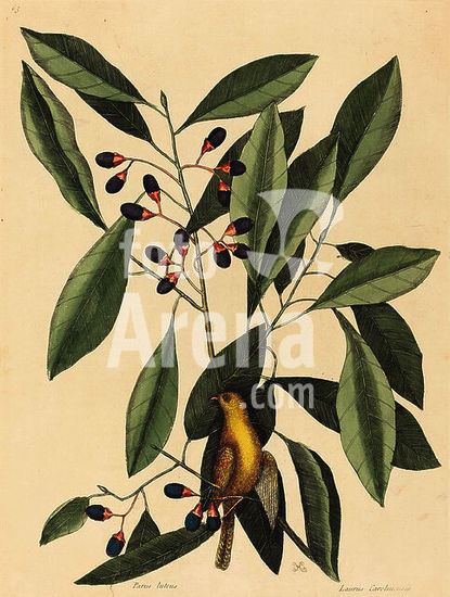 alb3730082 The Yellow Titmouse (Motacilla trochilus). Dated: published 1754. Dimensions: plate: 35.2 x 26.4 cm (13 7/8 x 10 3/8 in.) sheet: 40.2 x 28.4 cm (15 13/16 x 11 3/16 in.). Medium: hand-colored engraving on laid paper. Museum: National Gallery of Art, Washington DC. Author: Mark Catesby.