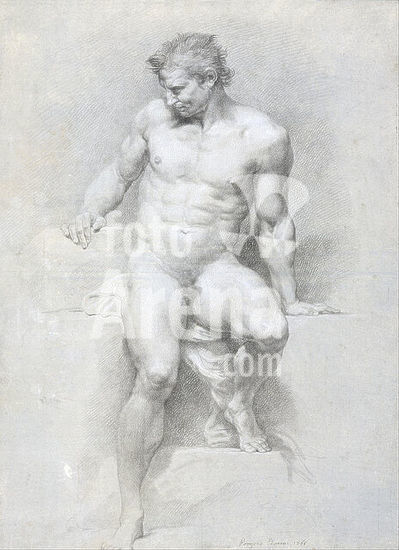 alb3892217 Academic Nude. Date/Period: 1765. Charcoal heightened with black and white chalk on blue-grey paper. Width: 39.1 cm. Height: 53.1 cm (sheet). Author: Pompeo Batoni.