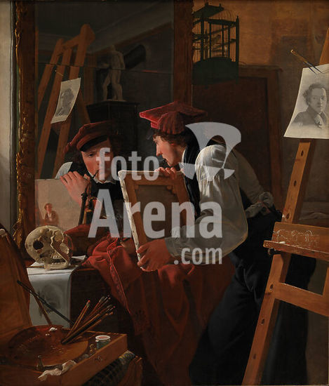 alb3892299 A Young Artist (Ditlev Blunck) Examining a Sketch in a Mirror. Date/Period: 1826. Painting. Oil on canvas. Height: 980 mm (38.58 in); Width: 850 mm (33.46 in). Author: Wilhelm Bendz.